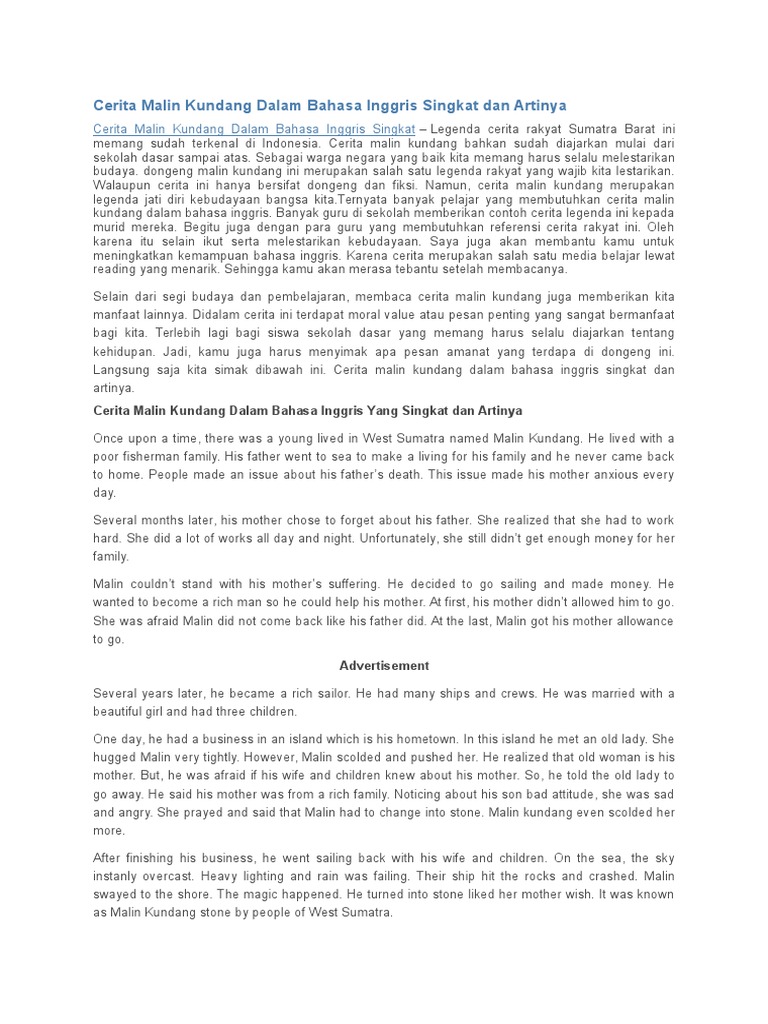 Example of Short Narrative Text About the Latest Malin Kundang – Download